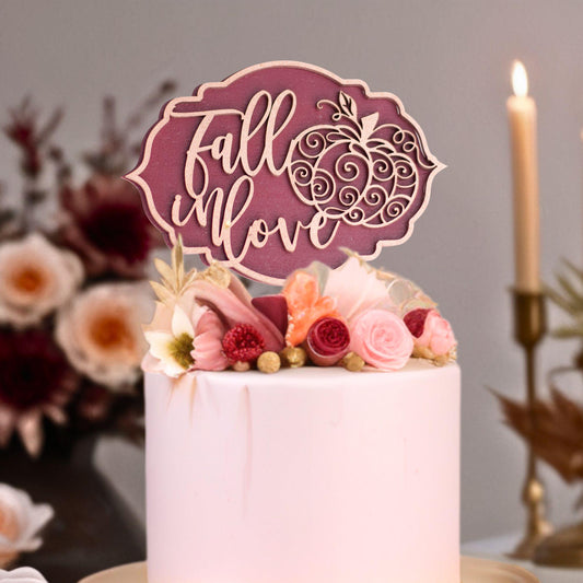 Fall In Love, Wood Cake Topper, Bridal Shower Cake Topper, Perfect for Bridal Showers, Wedding Showers, Engagement Party, and Fall Wedding