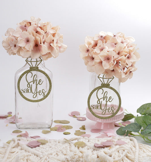 Mason Jar Tags, She Said Yes, Engagement Party Decorations, Centerpiece, Engagement Ring Decorations, Engaged,Bridal Shower Decor, Set of 6