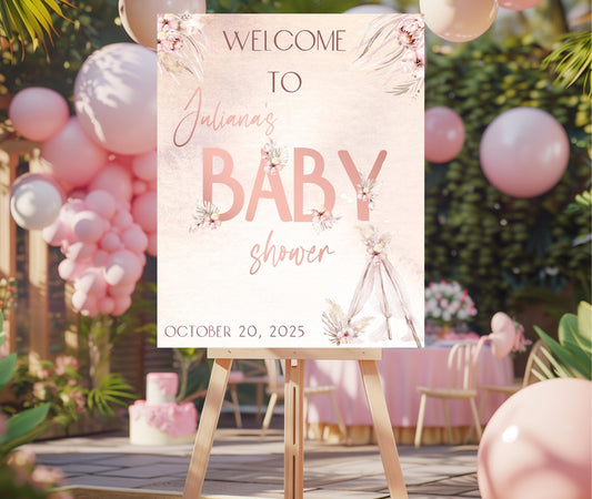Pampas Grass Baby Shower Invitation, Boho Baby Shower Girl Decorations, Boho Editable Baby Shower Invitation, Boho Welcome Sign Baby Shower