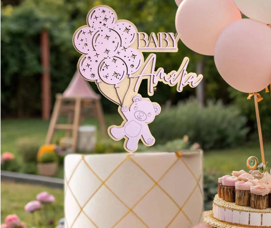 Teddy Bear Balloon Baby Shower, Baby Shower Teddy Bear Theme, Custom Cake Topper Name, Name Cake Topper Baby, Teddy Bear Boho Baby Shower