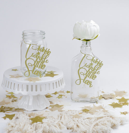 Twinkle Twinkle Little Star Baby Shower, Mason Jar Tags, Centerpiece, Moon and Stars Baby Shower, Set of 6