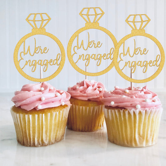 We're Engaged, Engagement Party Decorations, Cupcake Toppers, Engagement Ring Decorations, Engaged, Bridal Shower Decor, 10 piece