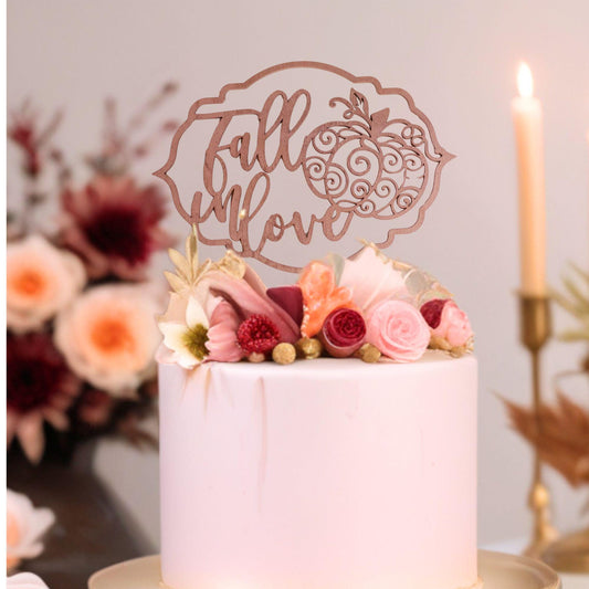 Bridal Shower Cake Topper, Fall In Love Wood Cake Topper - Perfect for Bridal Showers, Wedding Showers, Engagement Party, and Fall Wedding