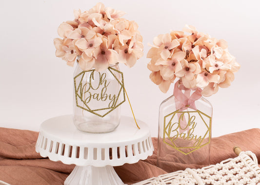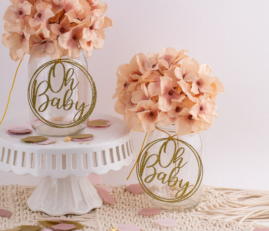Baby Shower Centerpiece, Oh Baby, Mason Jar Tags, Oh Baby Baby Shower Decorations, Baby Shower Decor, 6 tags