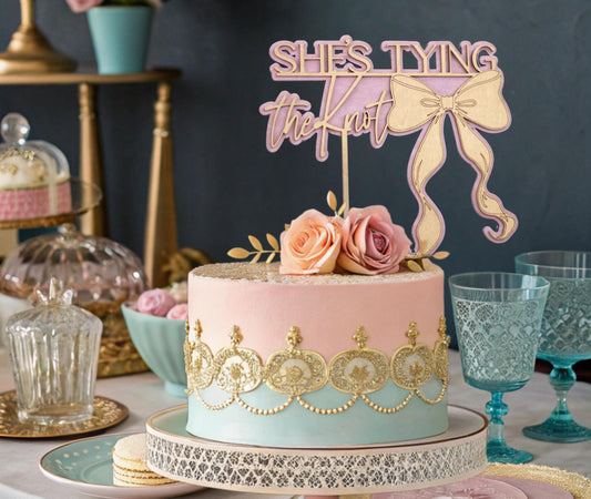 Tying The Knot, Bow Bridal Shower, Cake Topper Bridal Shower, Bow Bachelorette, Coquette Bridal, Wedding Shower Cake Topper