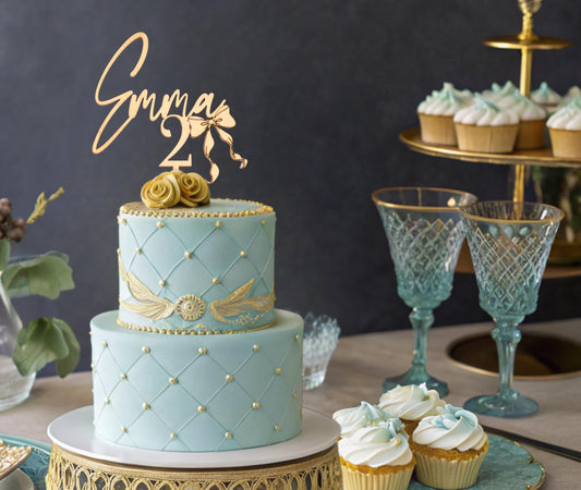 Birthday Custom Cake Topper, Custom Age Cake Topper, Custom Cake Topper Birthday Name, Bow Coquette Birthday, Customized Birthday Deocration