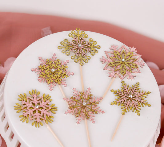 Cupcake Toppers, Snowflake Decorations, Winter Wonderland, Winter Baby Shower, Pink Snowflake Cupcake Toppers, Set of 6