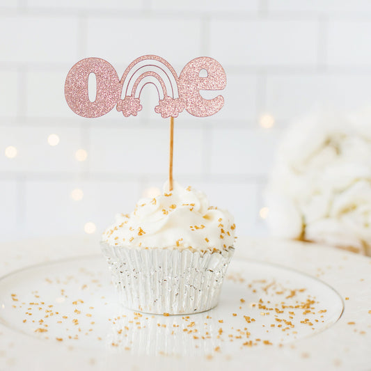 Boho Rainbow 1st Birthday Cupcake Toppers, Cupcake Picks, One, Girl 1st Birthday, Boho Rainbow Birthday Decorations, set of 10