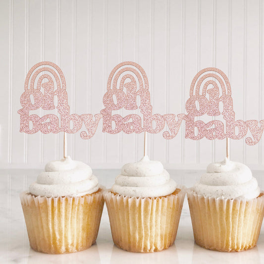 Boho Rainbow Baby Shower Party Decorations, Cupcake Toppers Oh Baby, Rainbow Baby Shower Decorations, Cupcake Picks Set of 10
