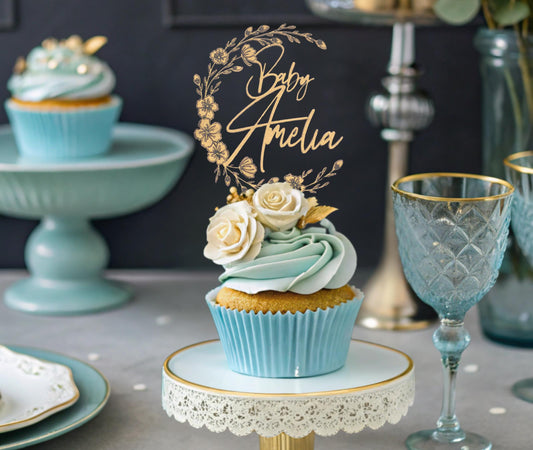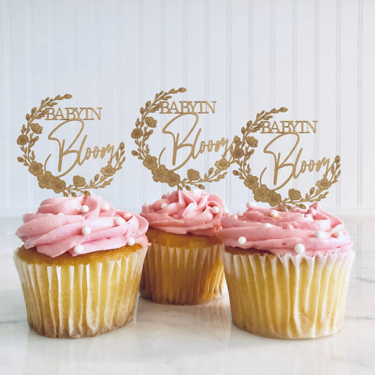 Custom Cupcake Toppers, Cupcake Baby Shower Toppers, Personalized Cupcake Toppers, Customized Baby Shower Decorations, Floral Baby shower