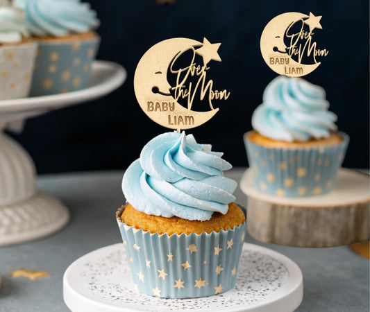 Baby Shower Moon, Custom Cupcake Toppers, Moon and Stars Baby Shower, Cupcake Baby Shower Toppers, Cupcake Personalized Toppers Set of 10