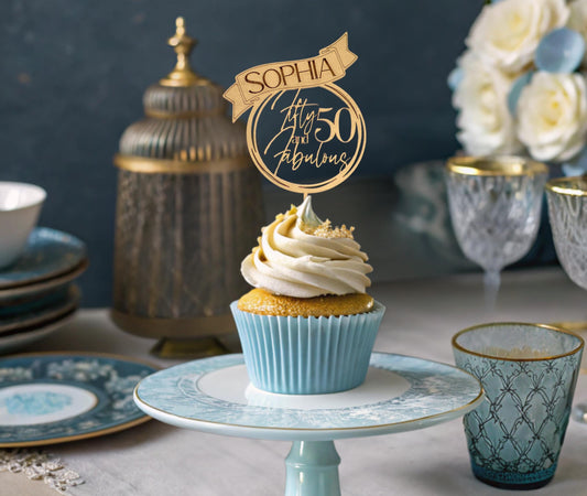 Cake Toppers Birthday 50th, Cupcake Topper Birthday, Fifty and Fabulous, Adult Birthday Decorations, 40th 50th Birthday, 50th 60th Birthday,