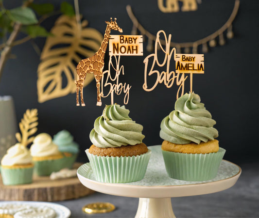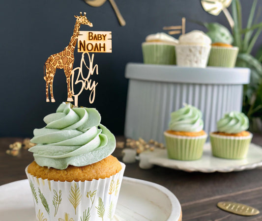 Safari Baby Shower, Custom Cupcake Toppers, Jungle Baby Shower, Baby Shower Safari Boy, Baby Girl Safari Shower, Custom Name Topper, Oh Baby