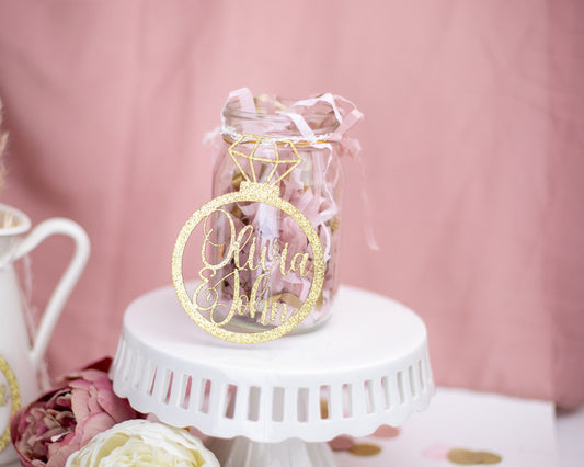 Engagement Party Decorations, Personalized, Mason Jar Tags,, Centerpiece, Engagement Ring Decorations, Engaged ,Bridal Shower Decor, 6 piece